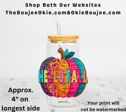 Add a touch of autumn to your favorite cups with our Fall-themed UV DTF cup wraps. Featuring vibrant colors and designs inspired by the season's beauty, these wraps are perfect for both personal use and festive gatherings. Capture the essence of fall with every sip.