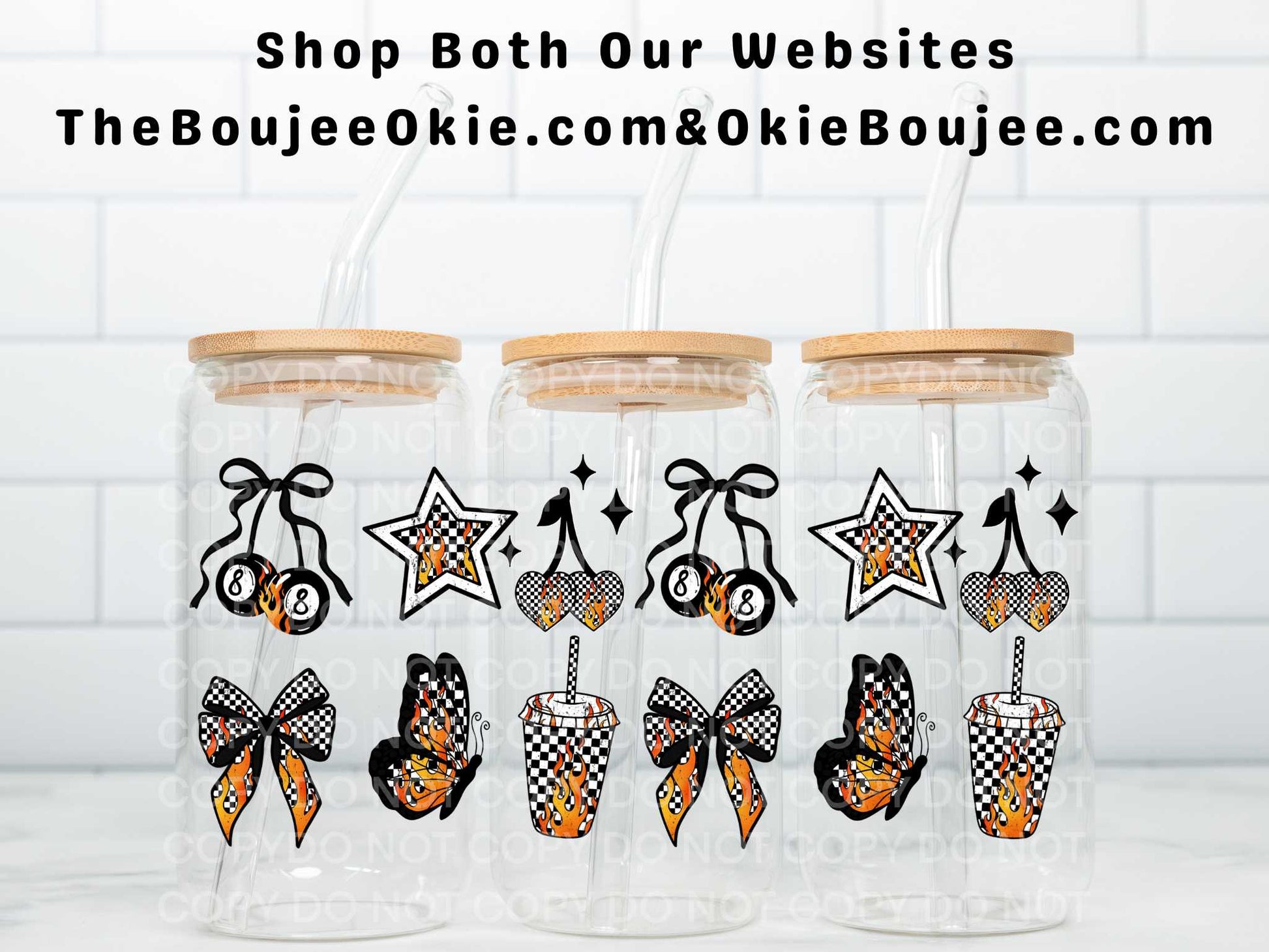 8 Balls Bows & Flames Uv Dtf Wrap Double Sided