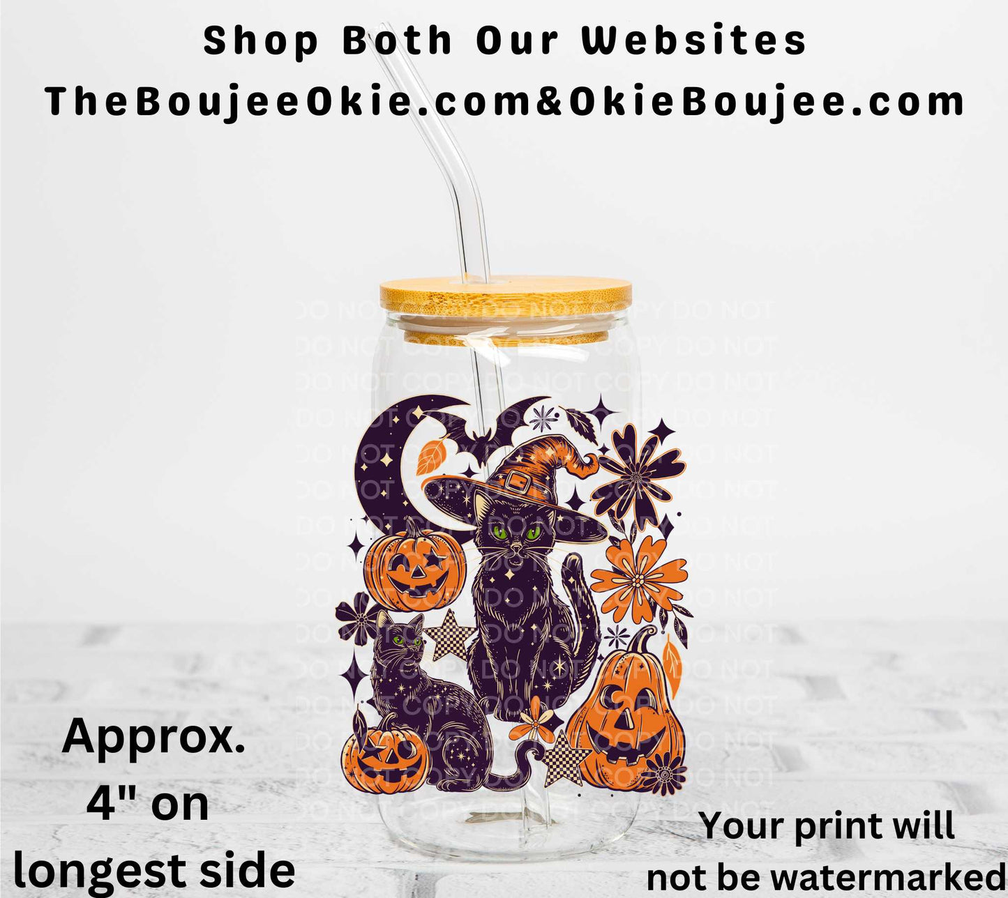 Black Cat & Pumpkins UV DTF Decal Double Sided