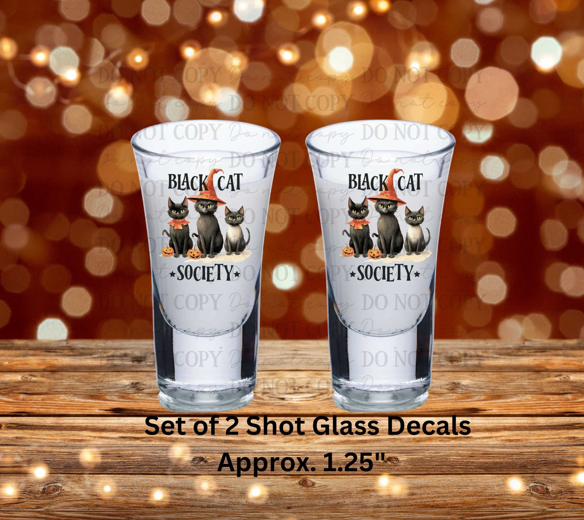 Black Cat Society Uv Dtf Decal Set of 2 Shot Glass Decal Double Sided
