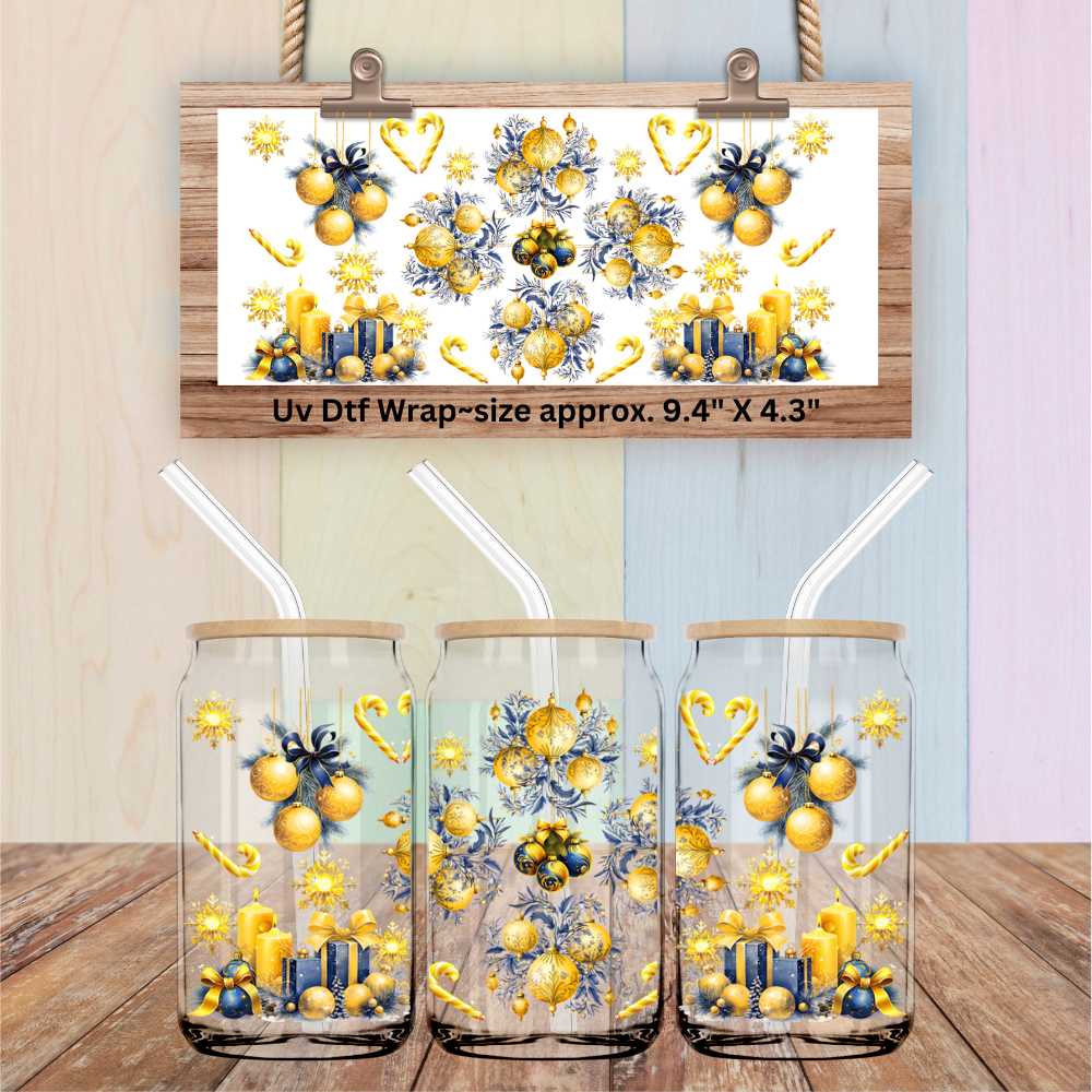 Blue & Gold Christmas – Double-Sided UV DTF Wrap