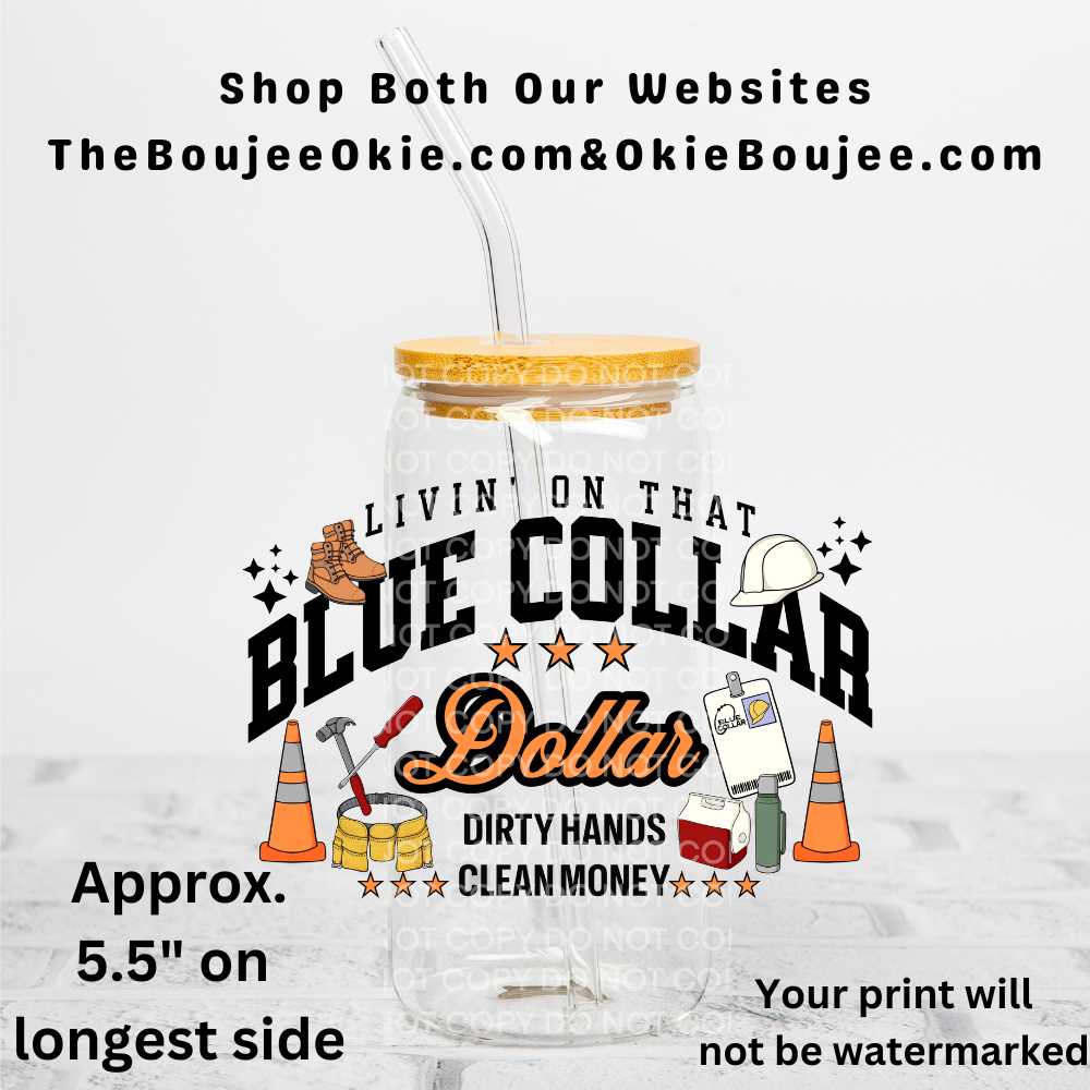 Livin On That Blue Collar Dollar Dirty Hands Clean Money Uv Dtf Decal Double Sided