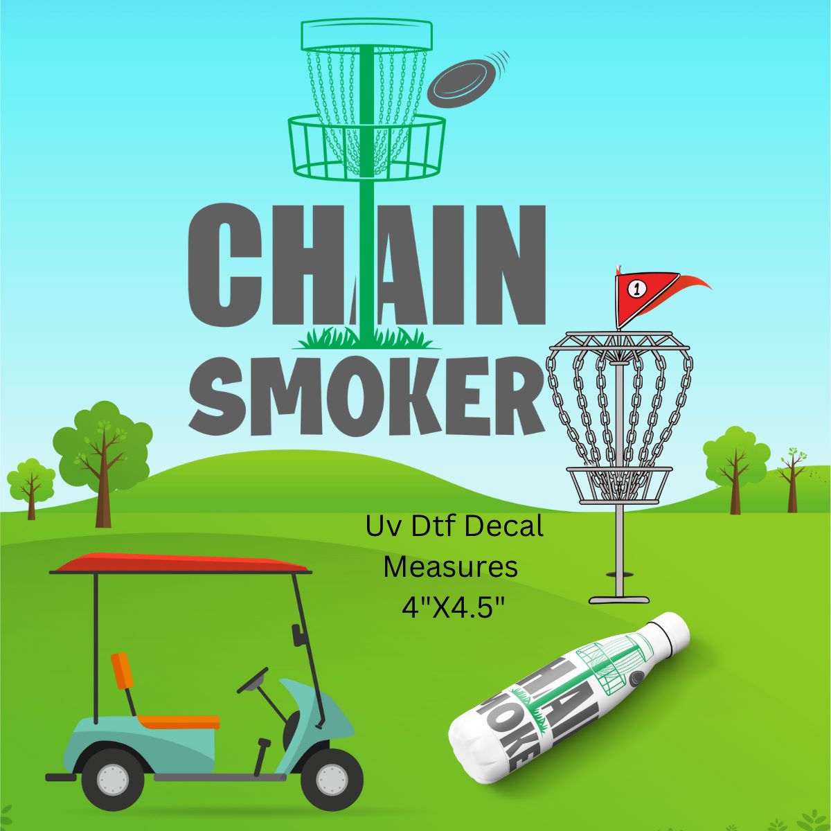 Uv Dtf Cup Wrap/Decal, Chain Smoker this one is for the disc golfers, they all have stickers and decals on their tumblers and water bottles.