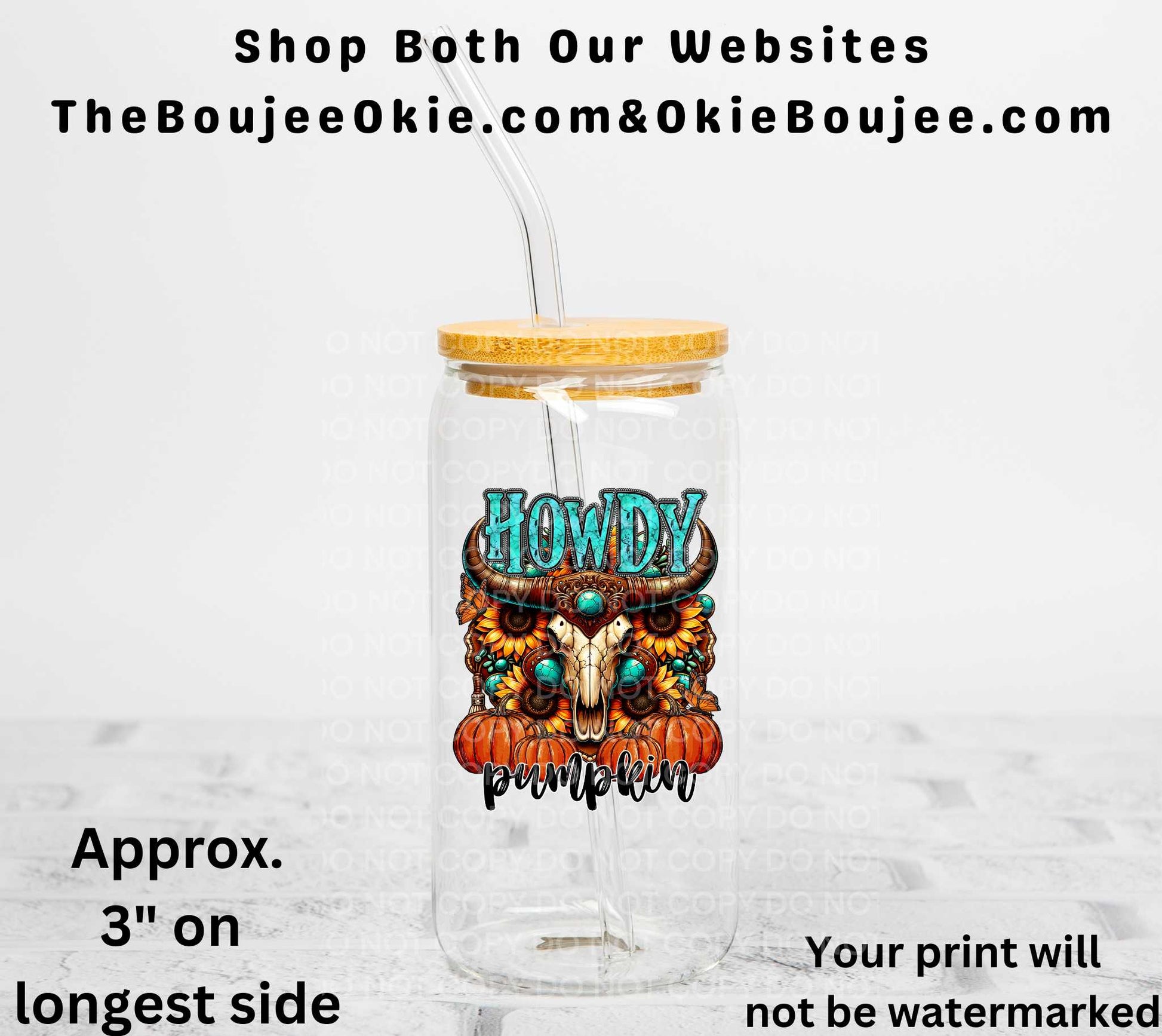 Western Turquoise Sunflower Howdy Pumpkin UV DTF Decal Double Sided