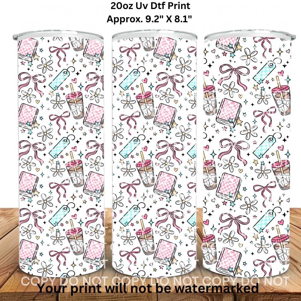 Iced Coffee Books & Bows 20oz Skinny Tumbler Sublimation Print