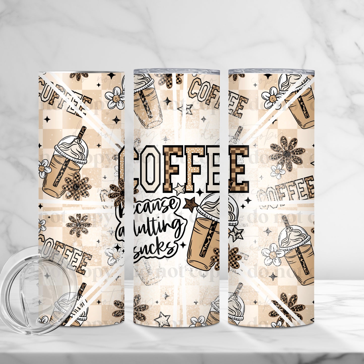 Coffee Because Adulting Sucks 20oz Skinny Tumbler Sublimation Print