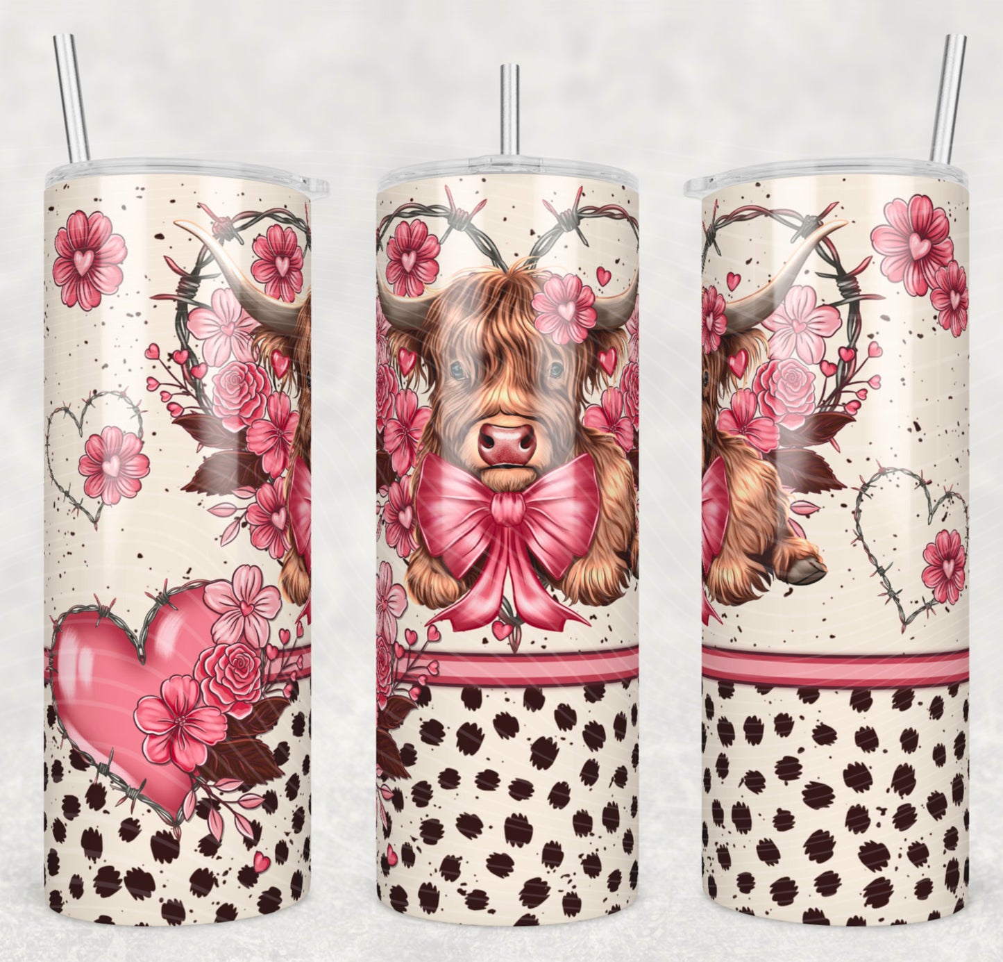 Pretty Highland Cow 20oz Skinny Tumbler Sublimation Print