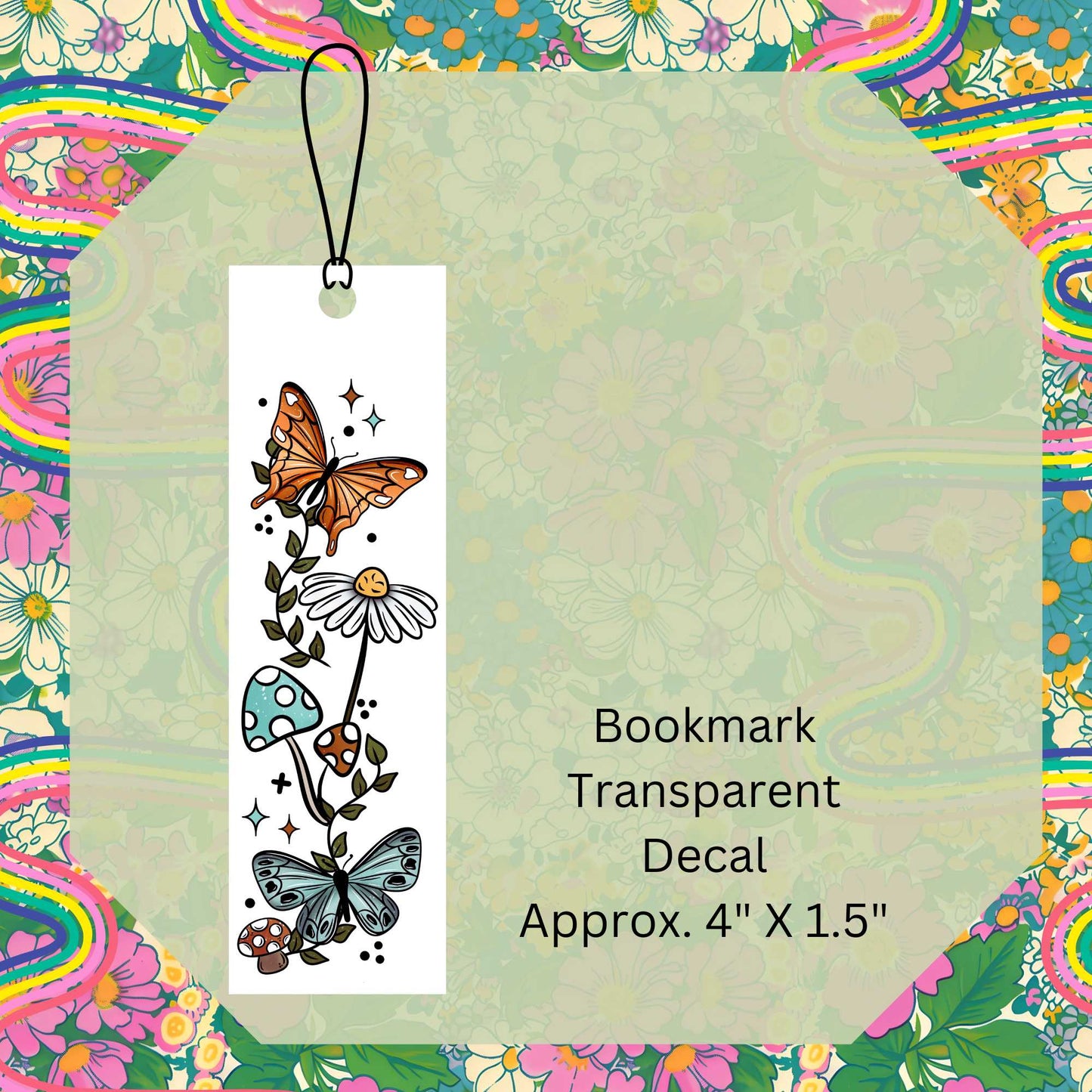 Butterflies & Mushrooms Single-Sided UV DTF Bookmark Decal