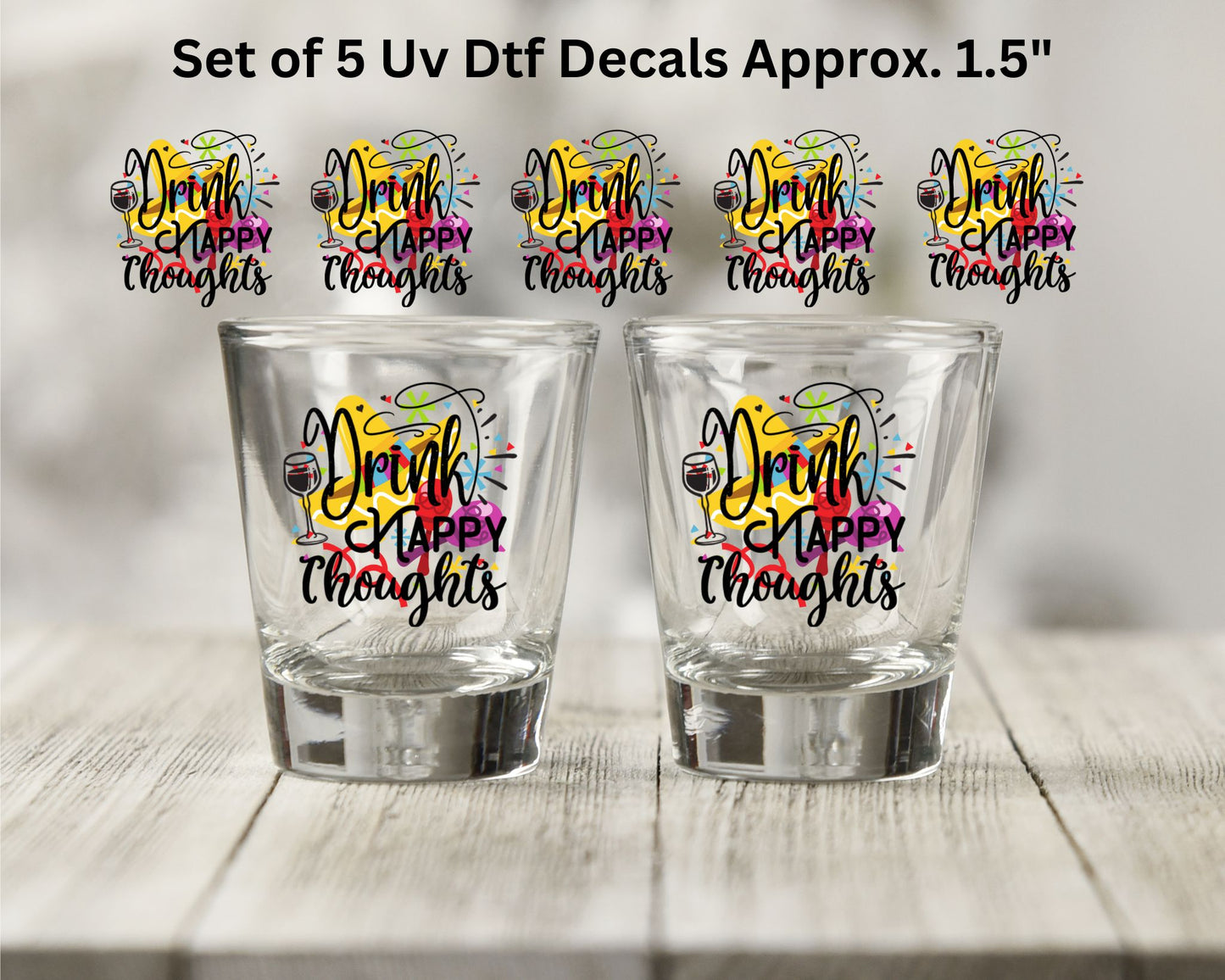 Drink Happy Thoughts Uv Dtf Shot Glass Decals Set of 5