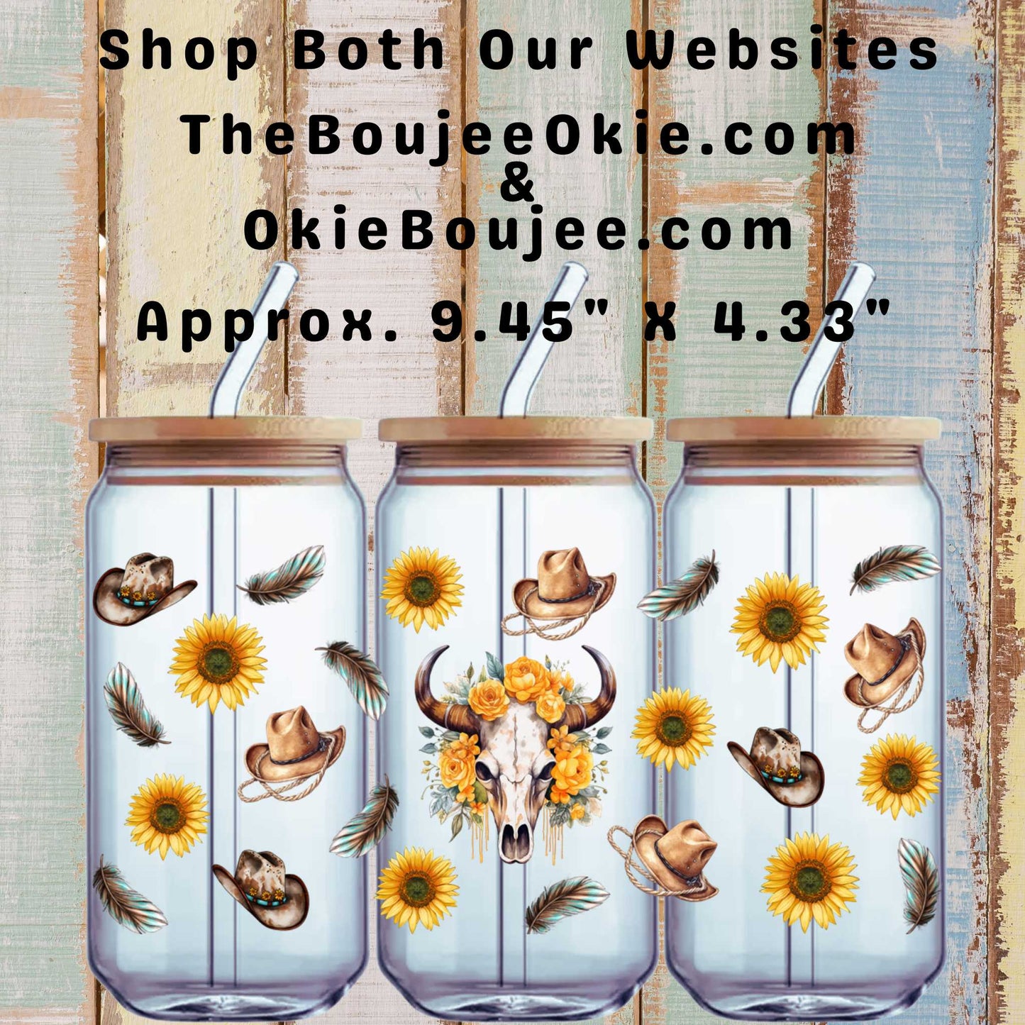 Western Skull Sunflowers Double-Sided UV DTF Wrap