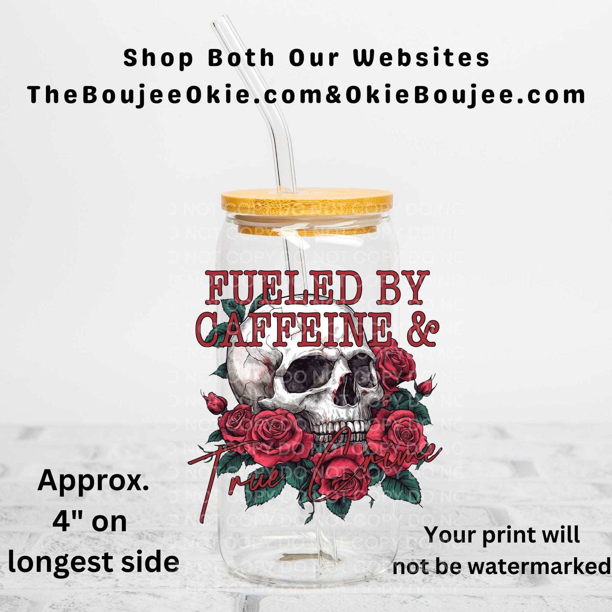 Fueled By Caffeine & True Crime Uv Dtf Decal
