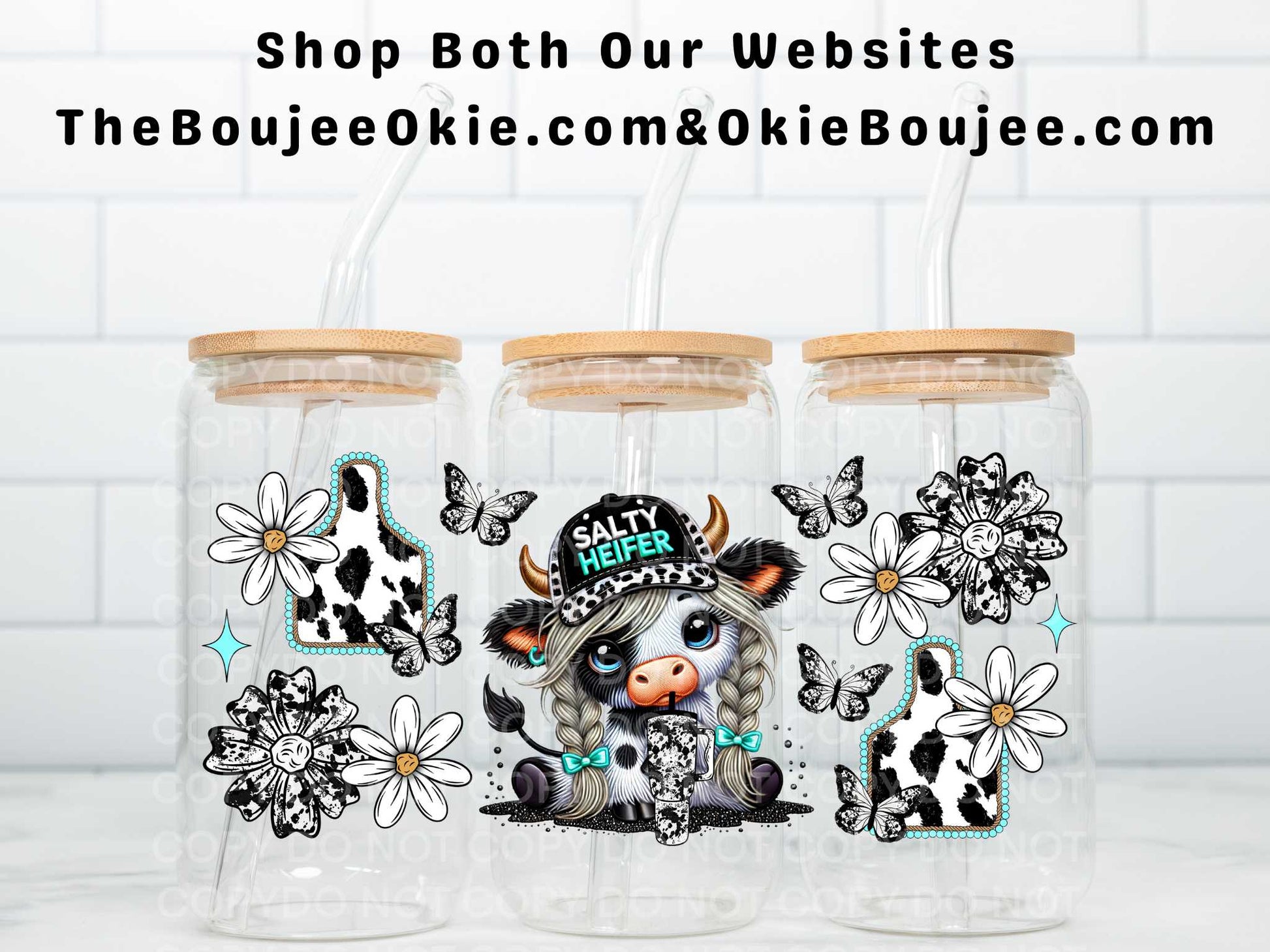 Salty Heifer Girl HIghland Cow Uv Dtf Wrap Western StyleW0140