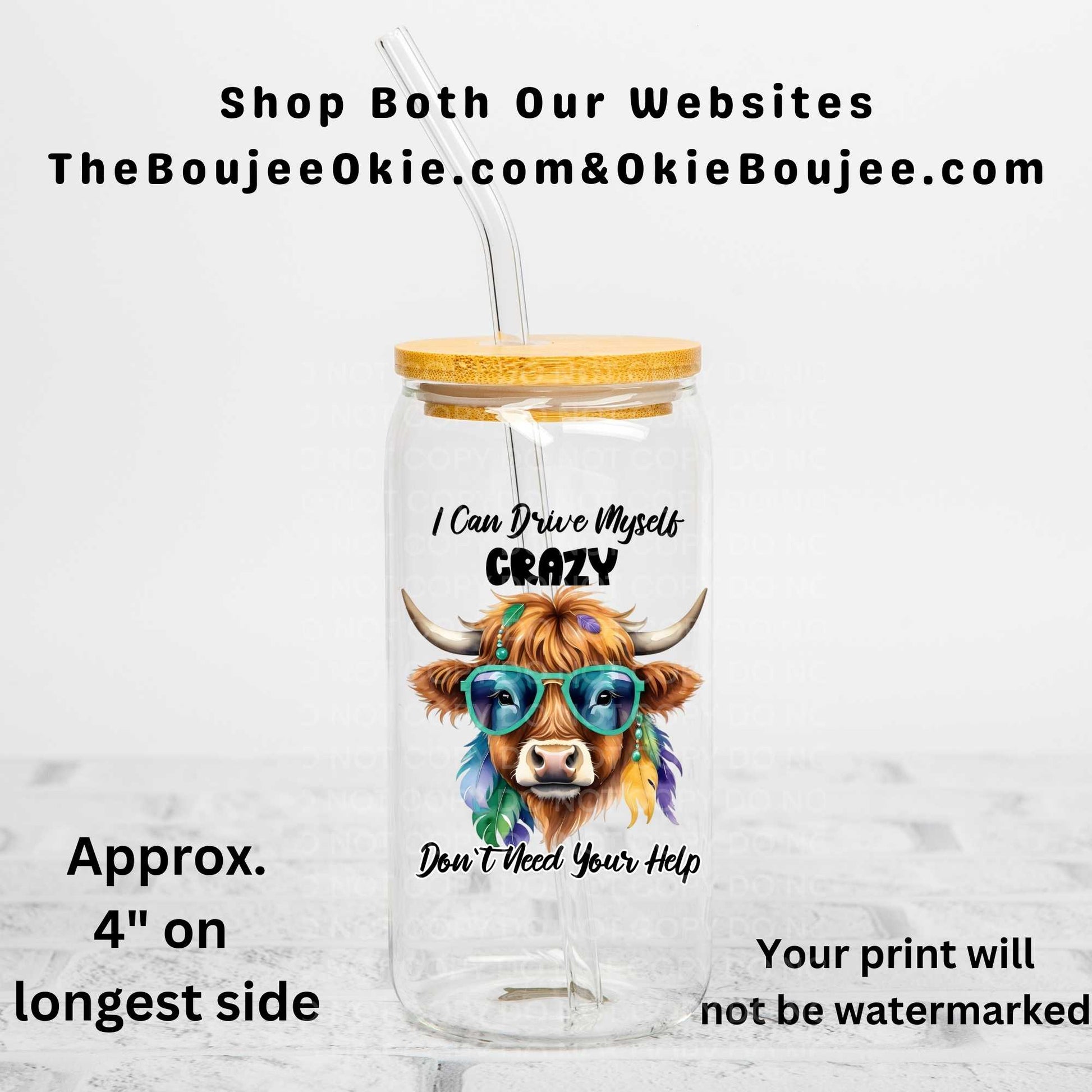 I Can Drive Myself Crazy - Don't Need Your Help Highland Cow Uv Dtf Decal