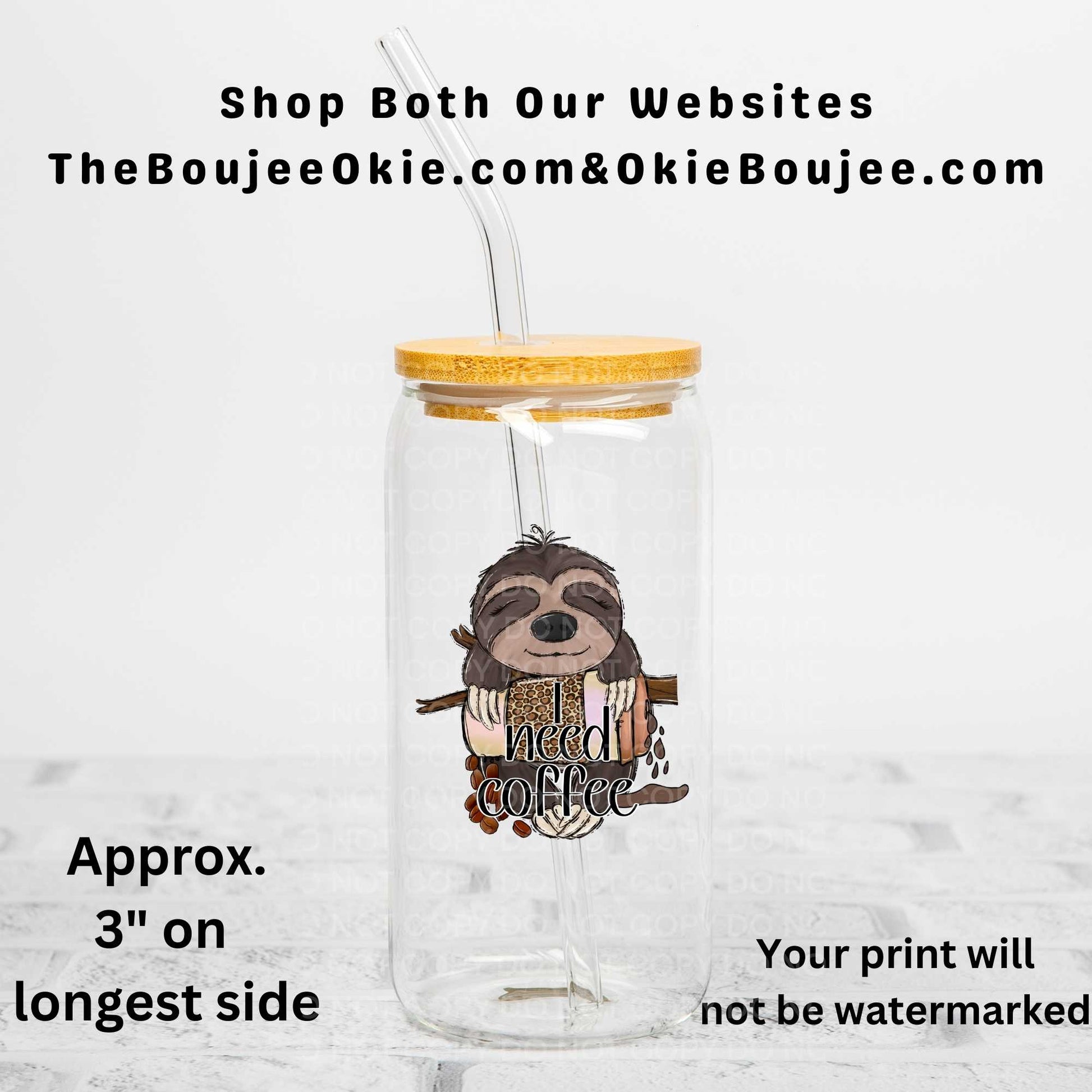 I Need Coffee Sloth Uv Dtf Decal