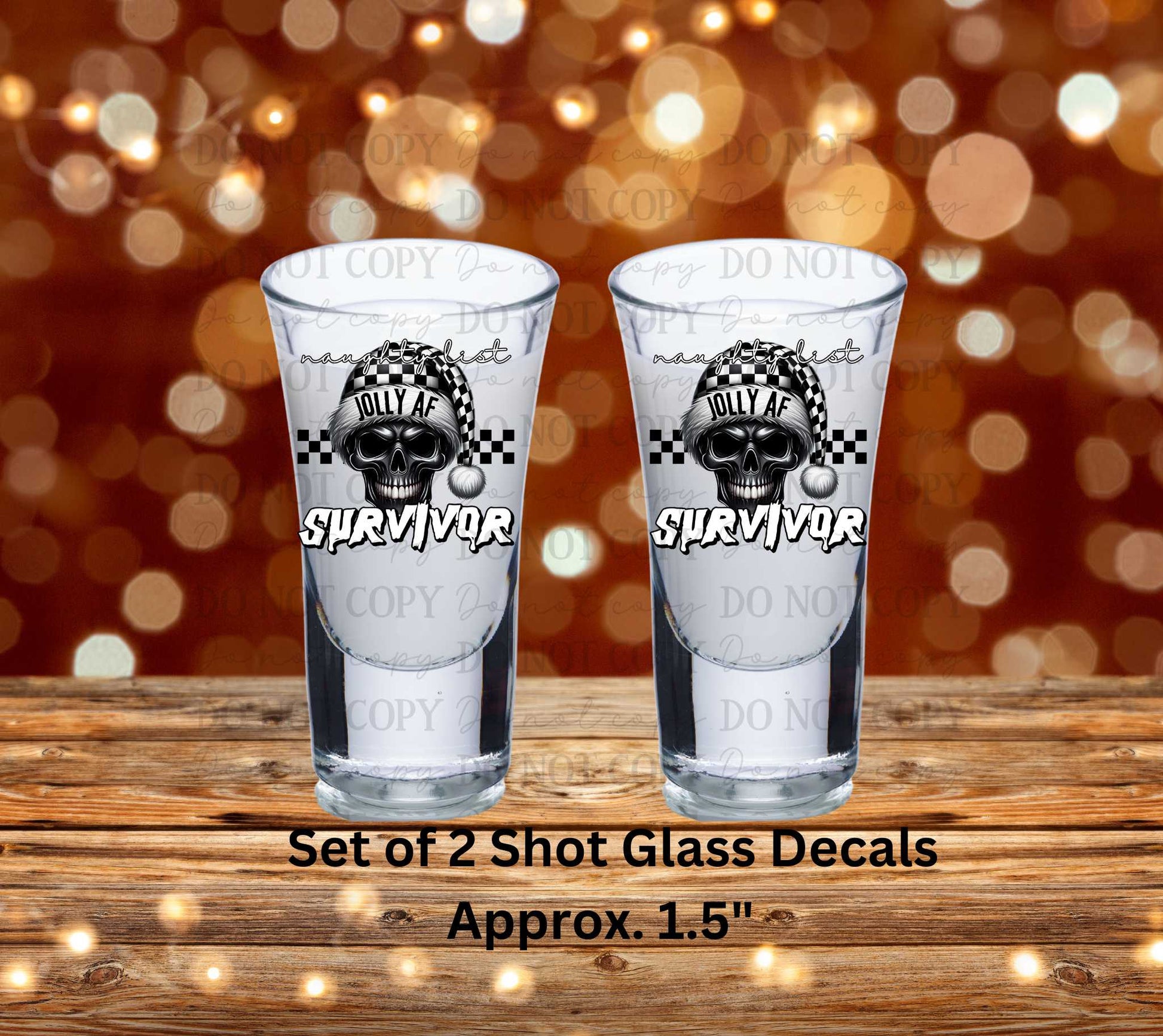 Jolly AF Naughty List Survivor Uv Dtf Decal Set of 2 Shot Glass Decal Double Sided