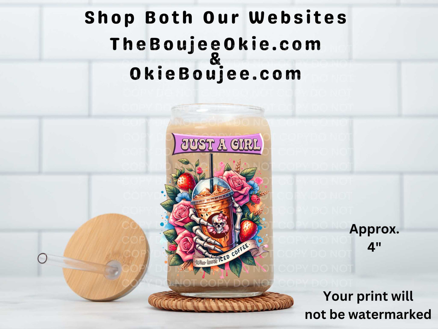 Just A Girl Who Loves Iced Coffee Double-Sided UV DTF Decal