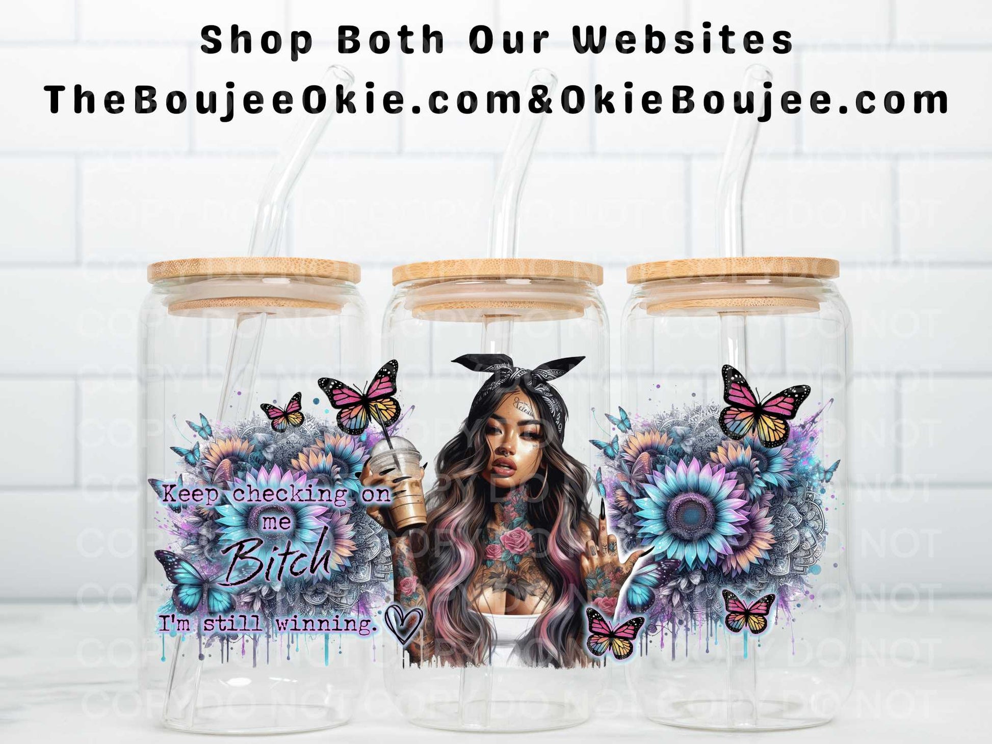 Keep Checking On Me Bitch I'm Still Winning Double Sided Uv Dtf Wrap