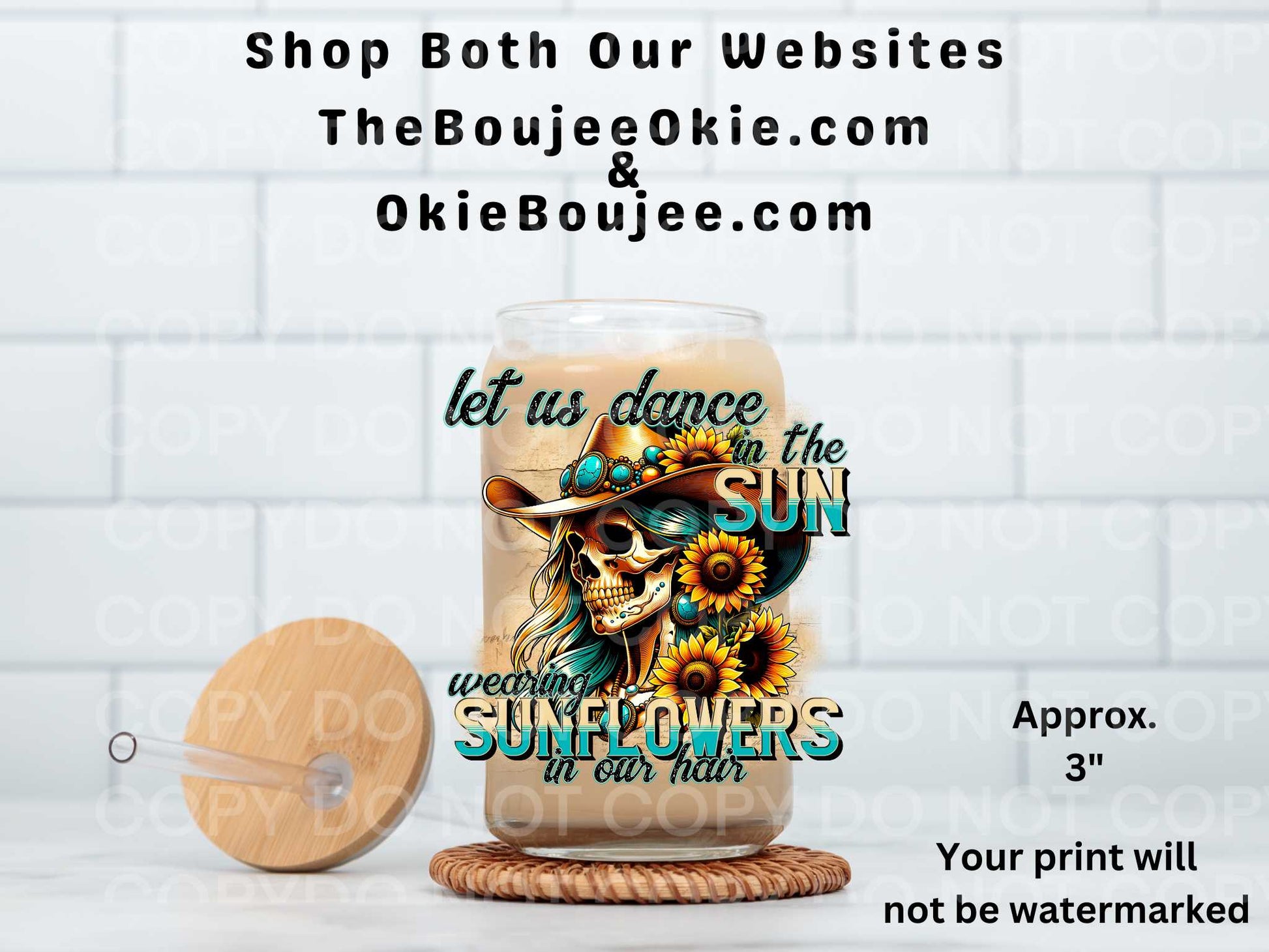 Let Us Dance In The Sun Wearing Sunflowers In Our Hair UV DTF Decal Double Sided