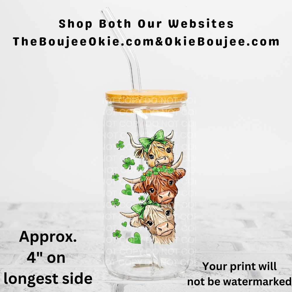 * Designed primarily for 16oz glass can tumblers, wraps may require light trimming depending on cup size and brand. Decals are ready to apply as-is. UV DTF transfers adhere best to smooth, clean, non-porous surfaces such as glass, acrylic, stainless steel, plastic, and coated metals.