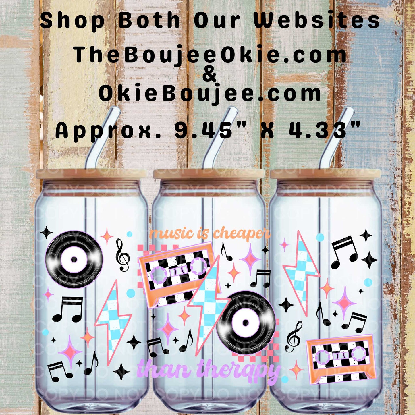 Music Is Cheaper Than Therapy Double-Sided UV DTF Wrap