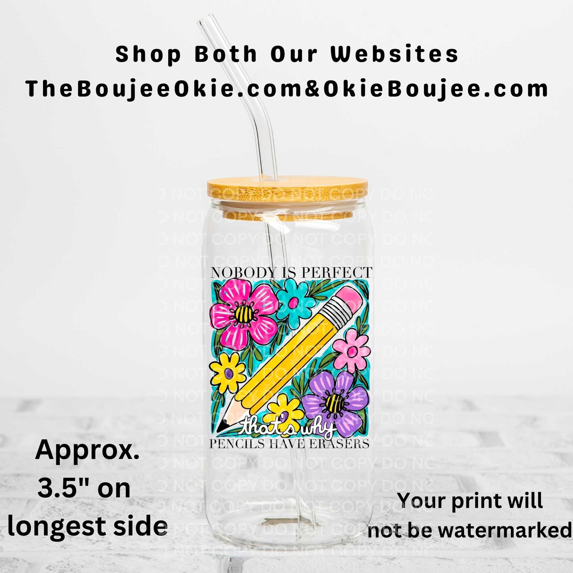 Nobody Is Perfect That's Why Pencils Have Erasers Uv Dtf DecalT14