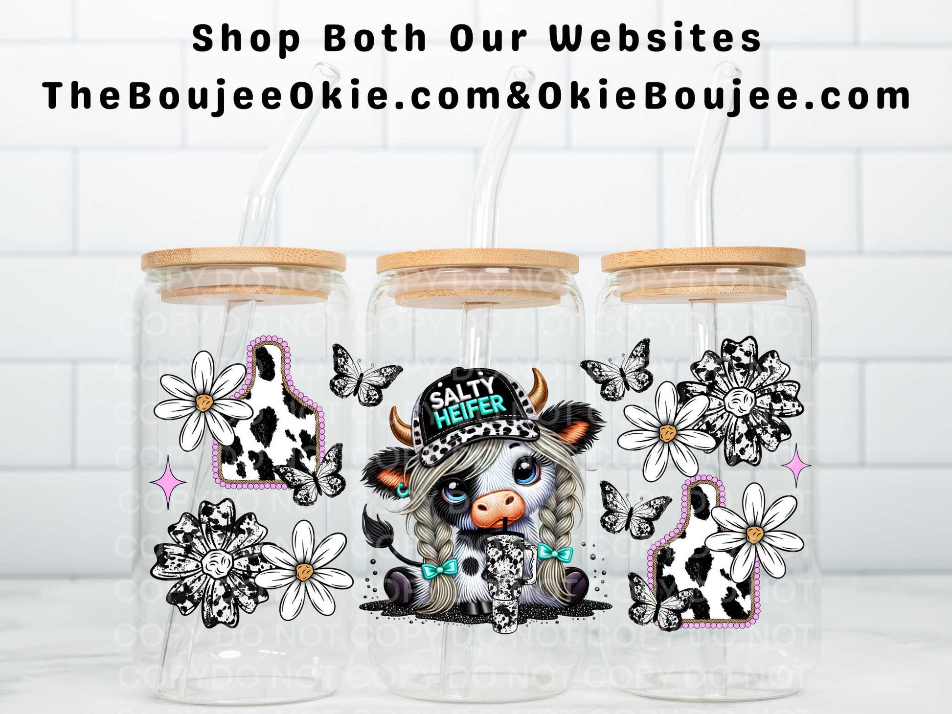 Salty Heifer Girl HIghland Cow Uv Dtf Wrap Western Style