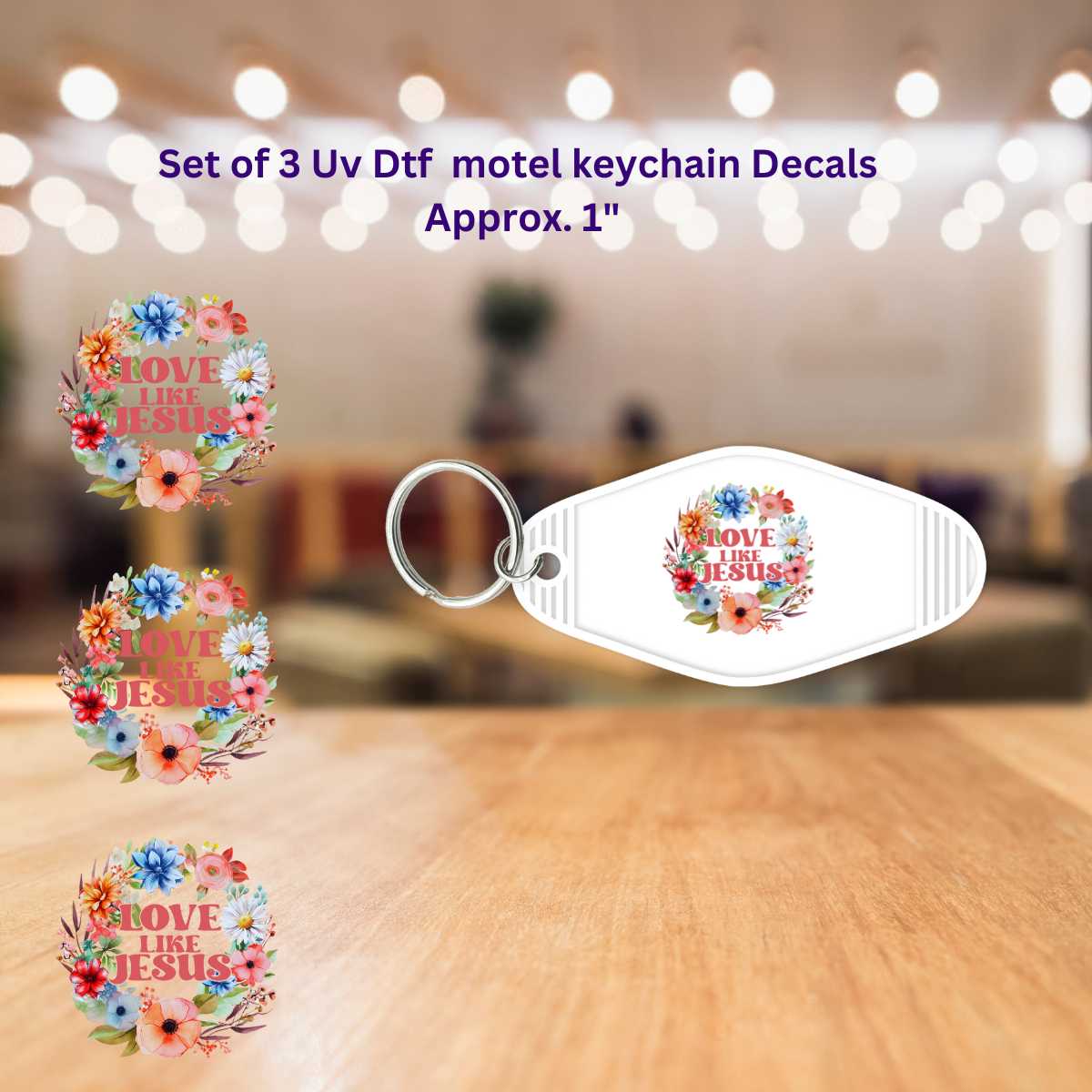 Set of 3 Uv Dtf Motel Keychain Decals Love Like Jesus | Double Sided