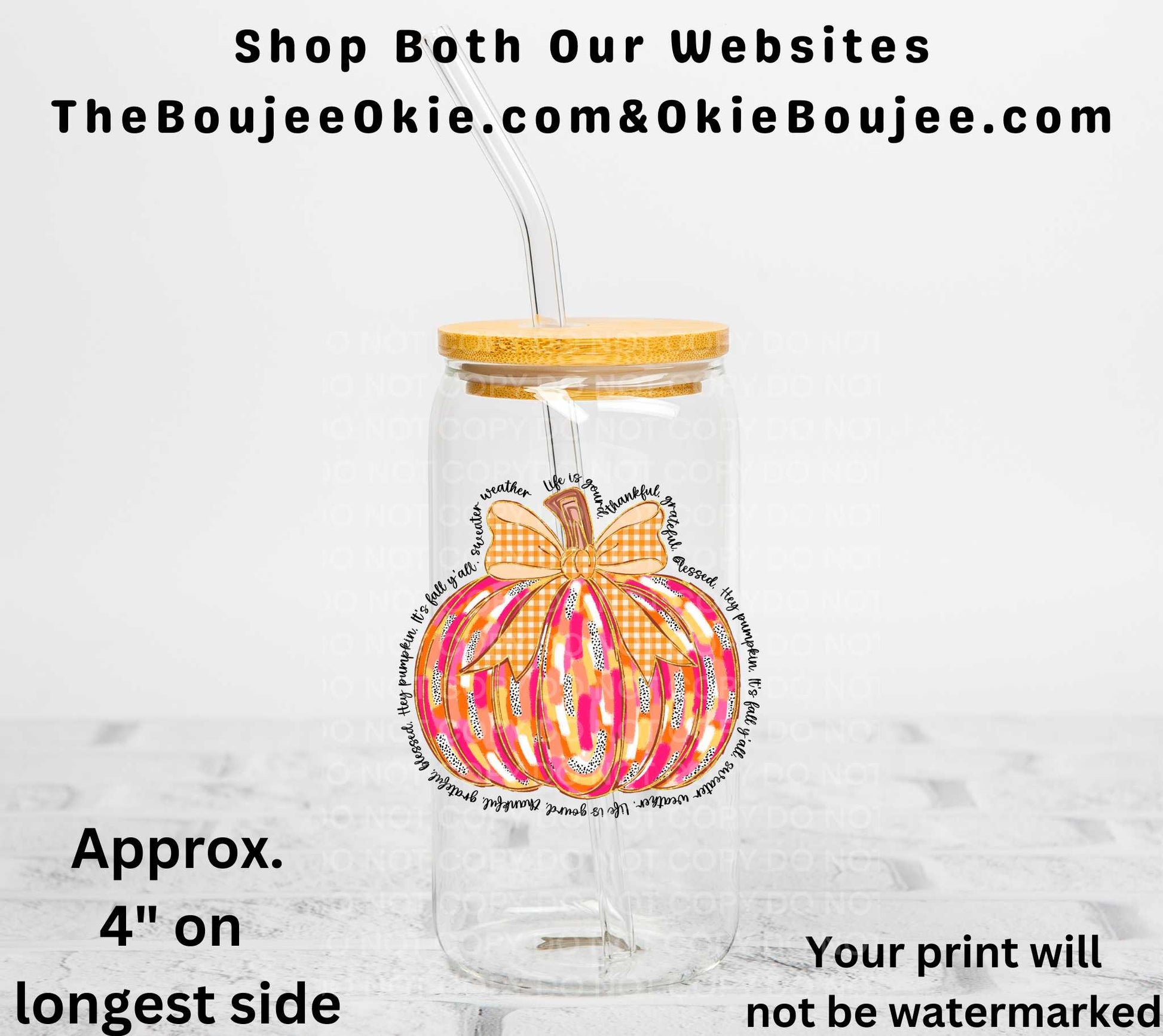 Thankful Grateful Blessed Pumpkin UV DTF Decal Double SidedT5
