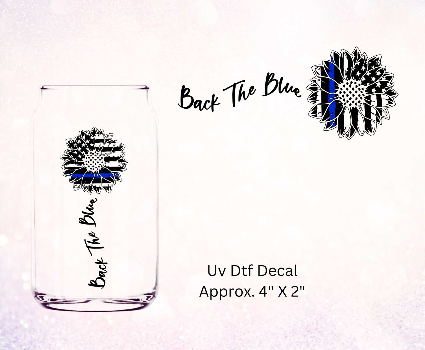 Uv Dtf Decal Back The Blue Flag Sunflower, Police Design