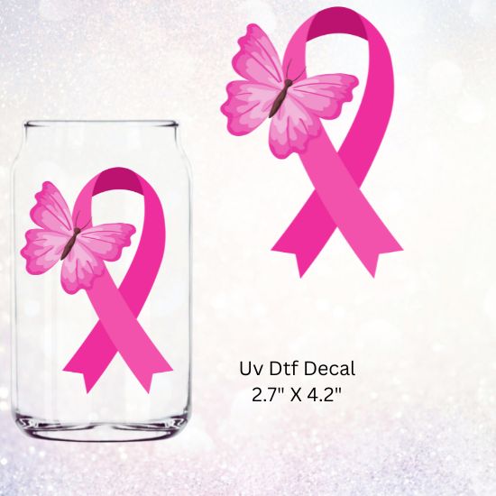 Uv Dtf Decal Pink Butterfly Breast Cancer Awareness Ribbon