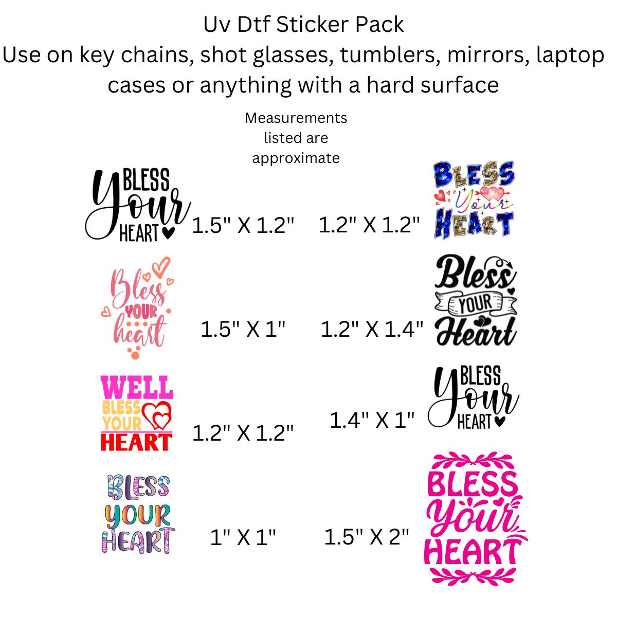 Uv Dtf Decals Set of 8 ~ Bless Your Heart Series