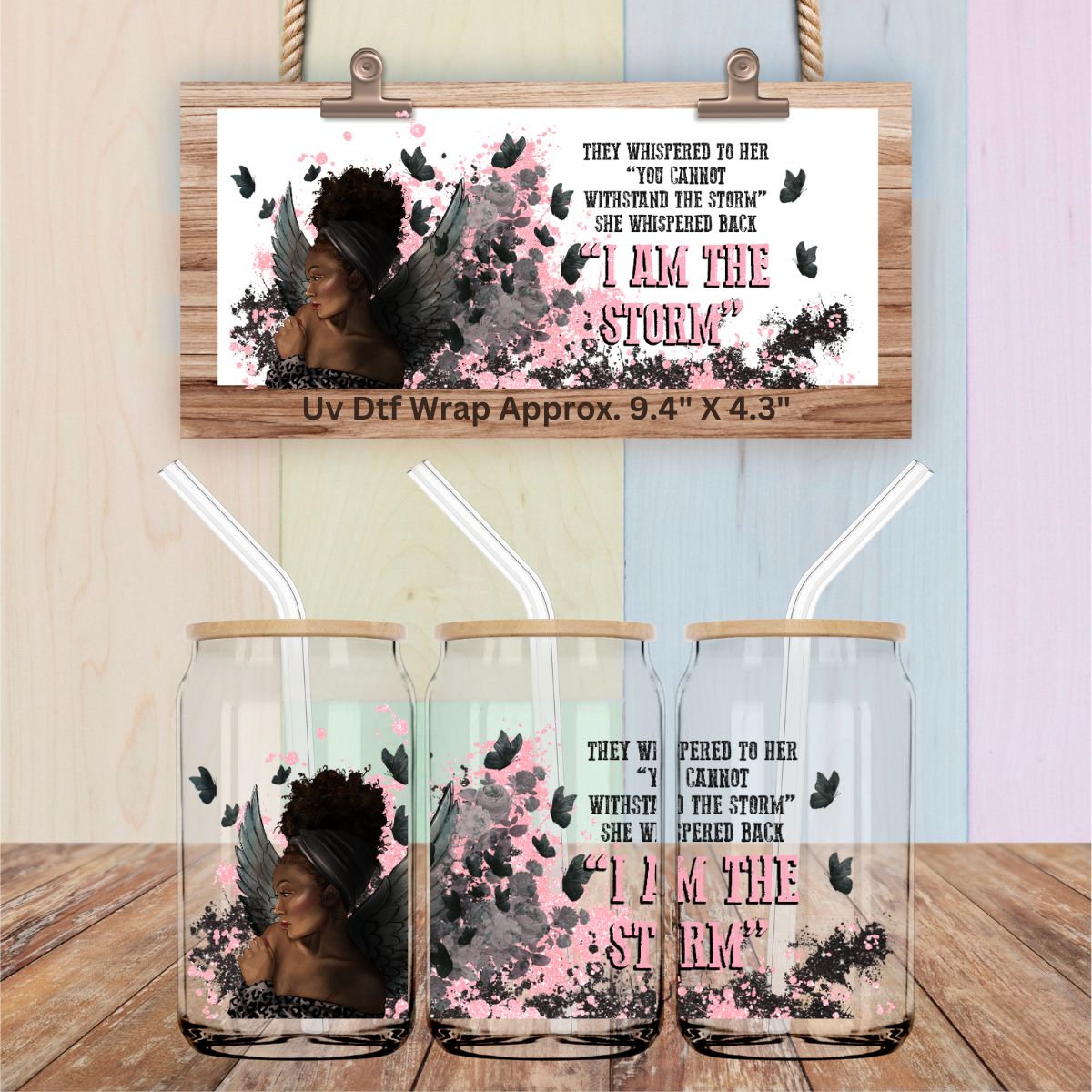 Uv Dtf Wrap Brown Skin Queen I Am The Storm, very beautiful design.