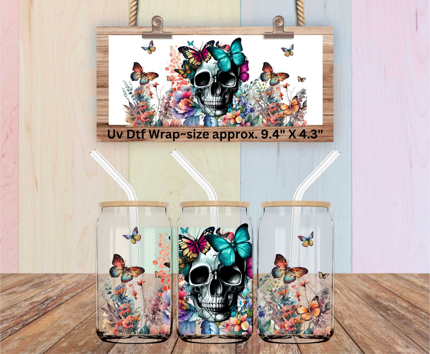 Butterfly Floral Skull Uv Dtf Wrap Double Sided